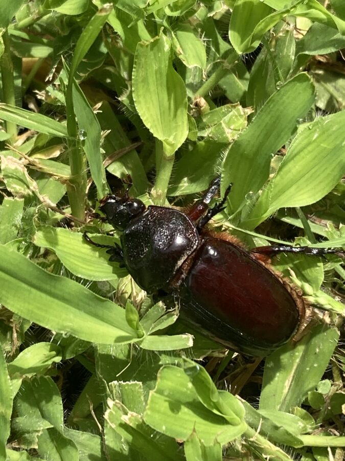 “The insect in the image is a female rhinoceros beetle (subfamily Dynastinae) “